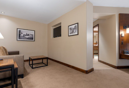 The 820 square foot Grande Alpine and Sunset Vista One Bedroom Suites offer private bedrooms and a separate living area. They’re perfect for guests seeking extra space. Units feature a king bed in a private bedroom, two full bathrooms and a queen sleeper sofa in the living area. Sunset Vista units offer more prominent mountain views.
